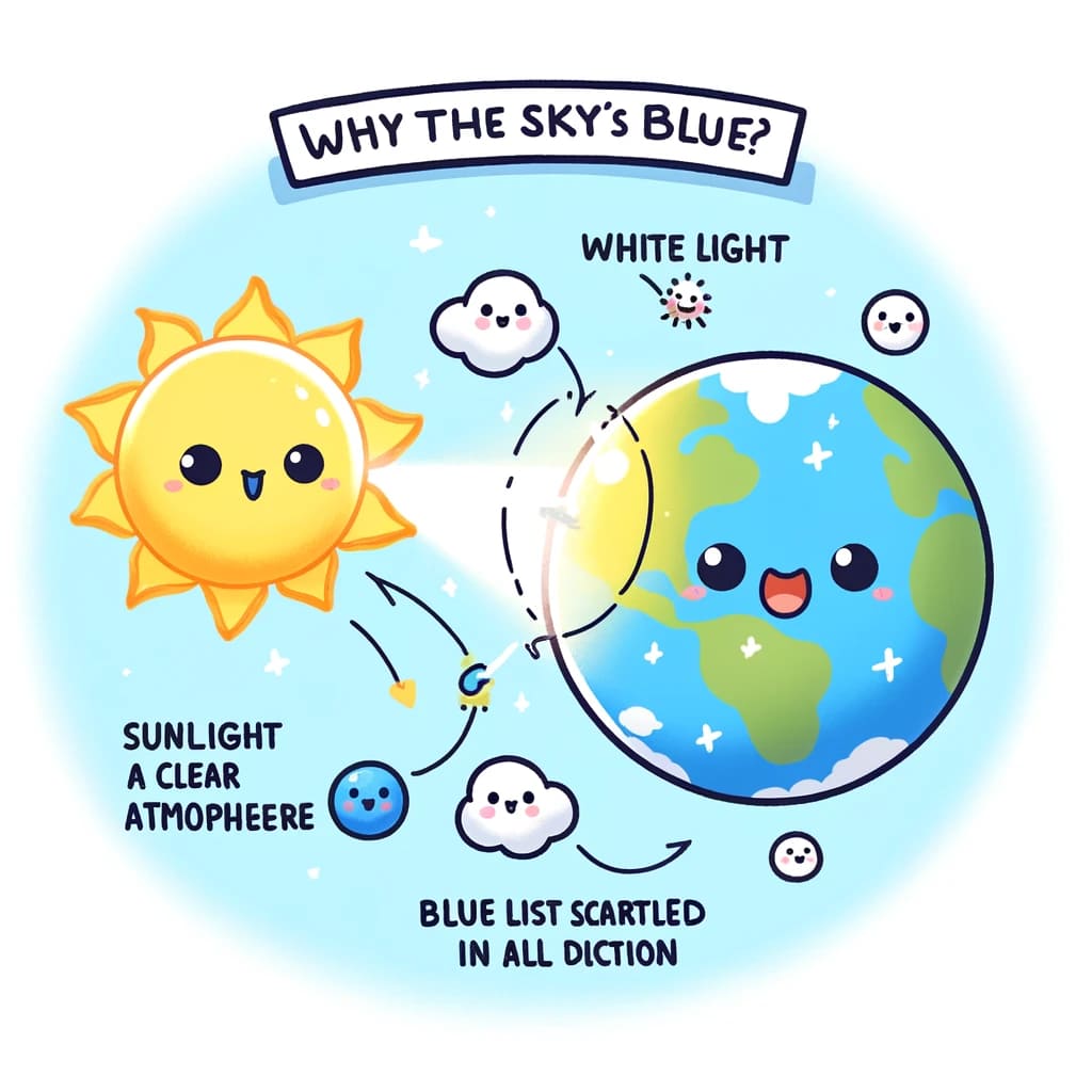 태양빛은 여러 가지 색깔의 빛으로 이루어져 있는데, 이 빛들은 서로 다른 파장을 가지고 있습니다. 이 태양빛이 지구 대기에 가득 차있는 산소와 질소 같은 분자들과 만나게 되면, 짧은 파장을 가진 파란색 빛이 다른 색들보다 더 많이 산란됩니다. 이렇게 산란된 파란색 빛이 사방으로 퍼지게 되면서 우리가 바라보는 하늘이 색이 파랗게 보이게 되는 것이죠. 간단하게 설명하자면, 작은 파란색 불꽃이 하늘 곳곳에서 터진다고 생각하면 쉽습니다.